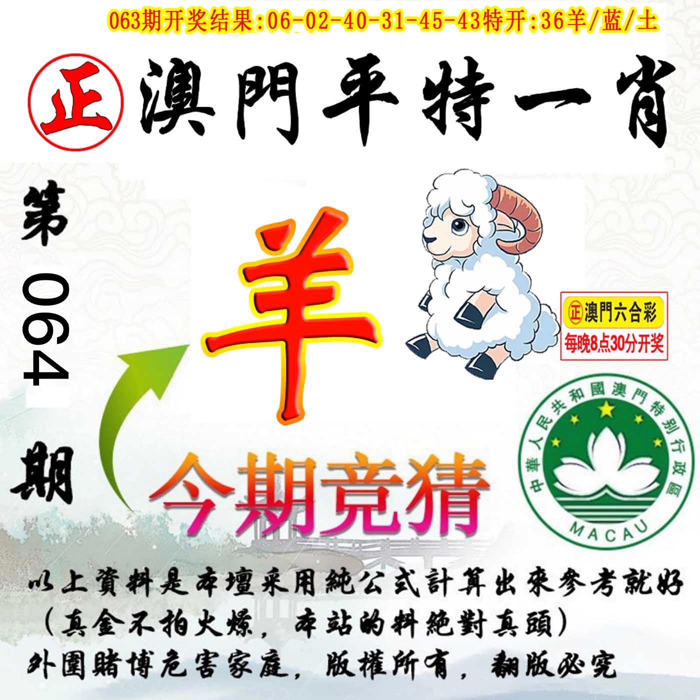 第064期:【平特一肖】羊羊羊 |